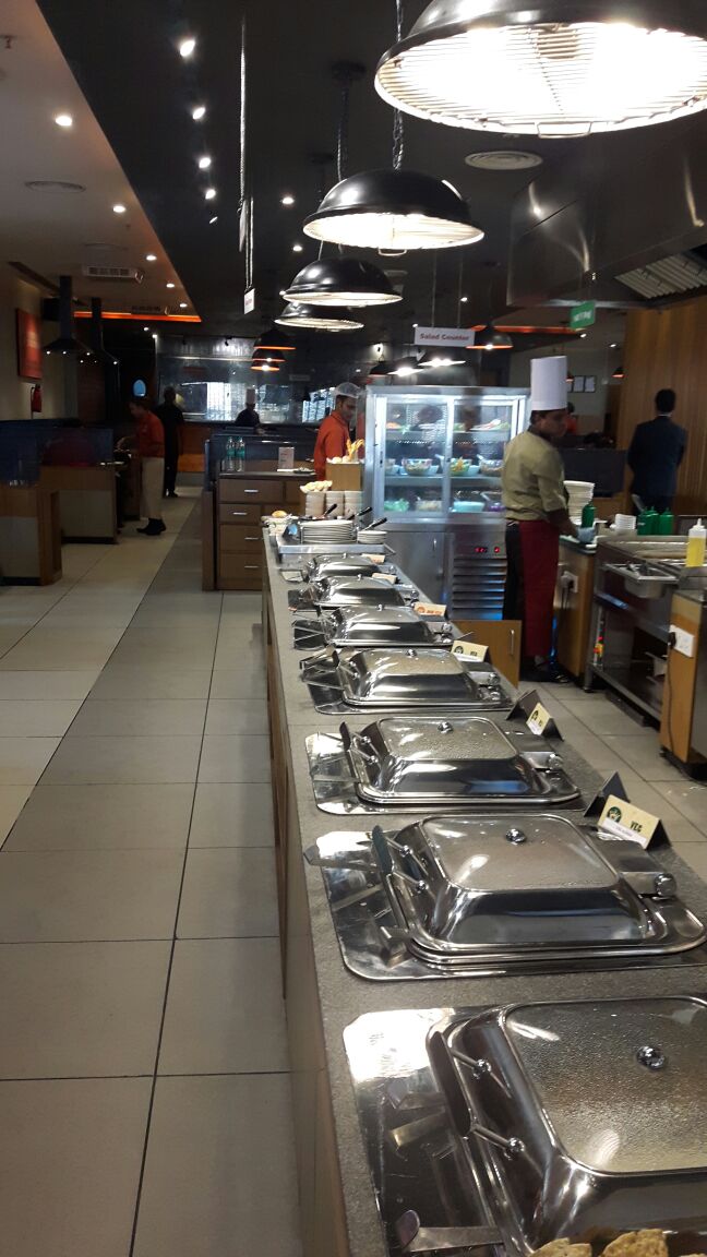 The decor is super cool with bright orange colors and the buffet counter is placed right at the center with so many new additions in their live counter sections. They have special live counters for Shawarma and Rolls. For vegetarians there’s a live Daal counter which has 4 types of daal prepared and seasoned your way. And the Chinese live counter which serves some yummy preparations. They have also live counter which serves veg. & Non Veg. Excellent. The staff is very warm and will make sure you’re seated well and taken care of at all times. Their mocktail menu has added new flavors and the way the present , is simply wonderful.