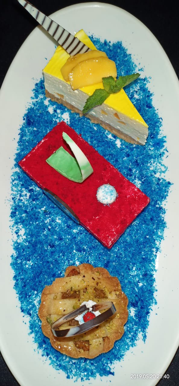 Red velvet pastry, Mango cheese cake & apple pie.